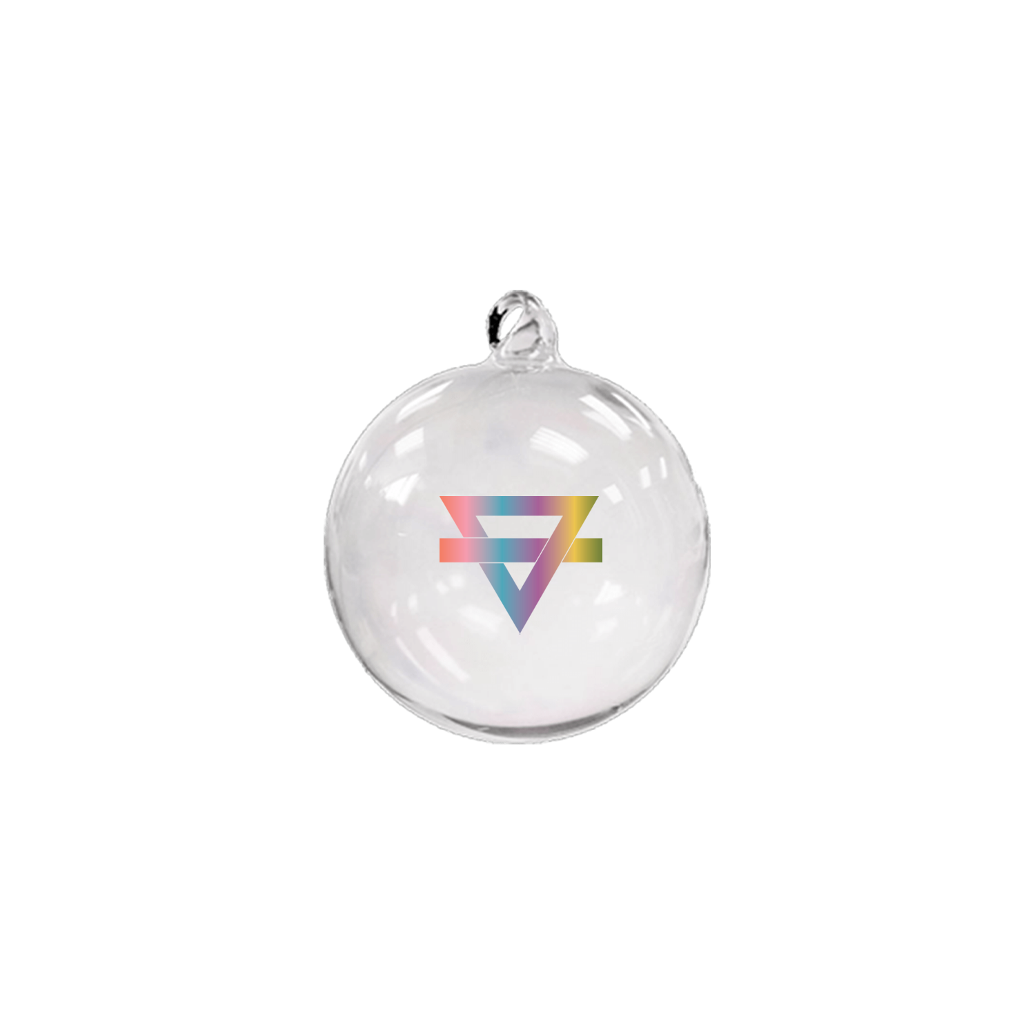 Hand-blown glass Triangle Logo ornament.